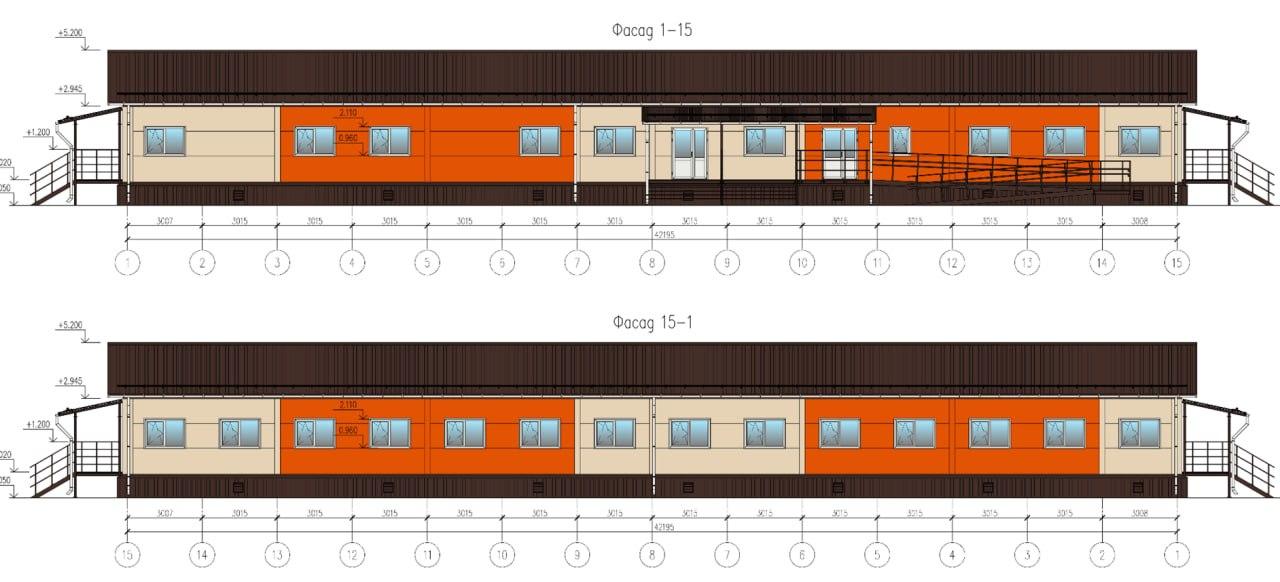 Общая площадь спального корпуса — 621 квадратный метр, его длина — 42,2 метра, а ширина — 14,7 метра. Как должно выглядеть здание, можно оценить по чертежам, также опубликованным в тендере.