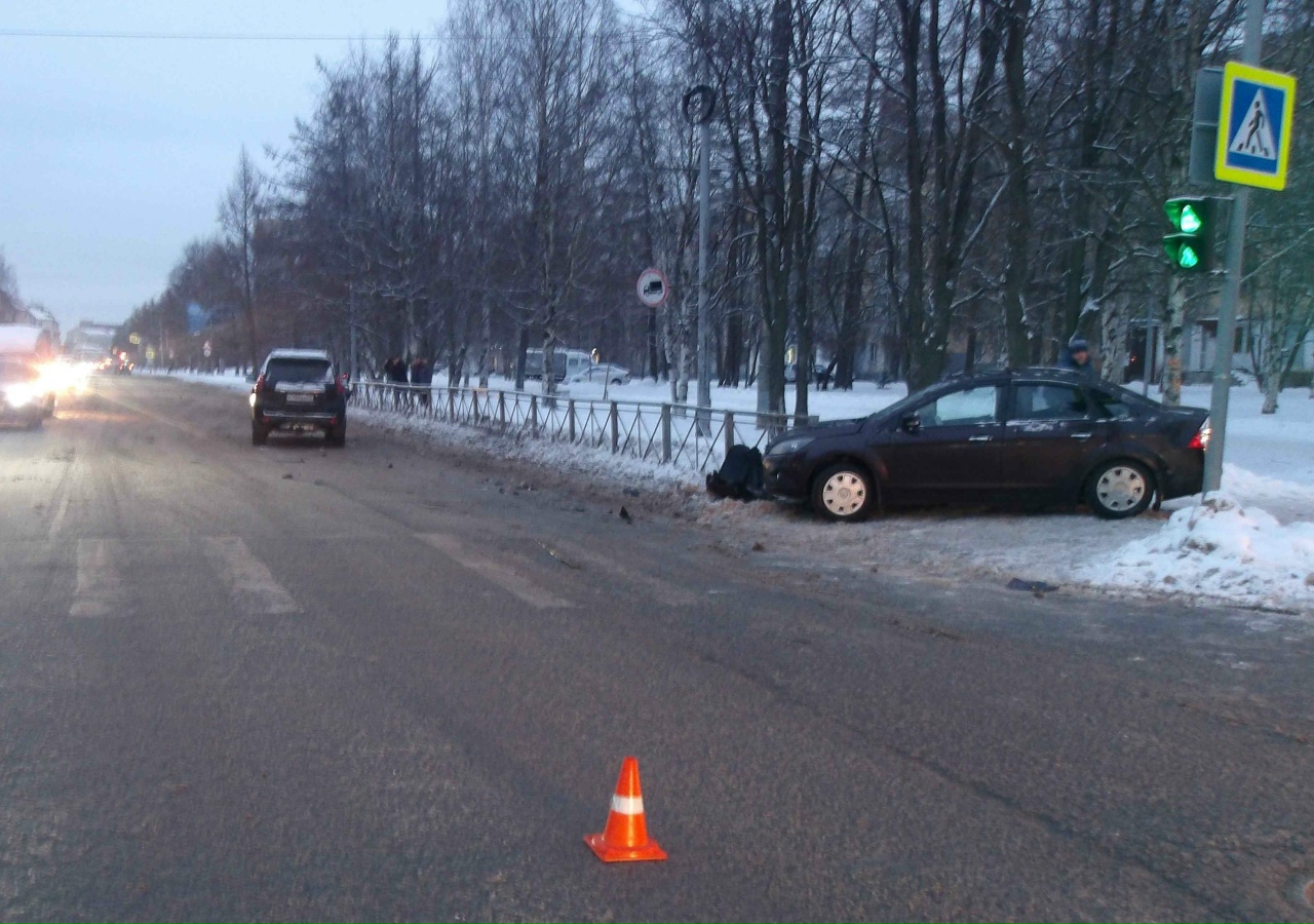 Два автомобиля столкнулись в 13:45 на перекрестке пр. Троицкий и ул. Гайдара. Как сообщили в ГАИ, 57-летний водитель Ford Focus при повороте налево на запрещающий сигнал светофора не уступил дорогу и врезался в Toyota Land Cruiser, за рулем которого был 59-летний мужчина. Он ехал прямо навстречу на «красный».