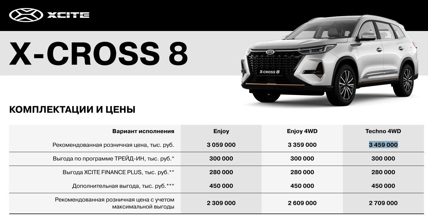 • X-CROSS 8 Techno 4WD — 3 459 000 рублей