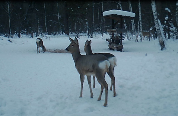 Косули и кабаны, которые каждую зиму приходят к кормушкам в Бузулукском бору Оренбургской области, похоже, давно научились уживаться друг с другом. За все время наблюдений лесничие ни разу не видели, чтобы животные сталкивались у раздачи корма — каждый вид приходит в свое время.