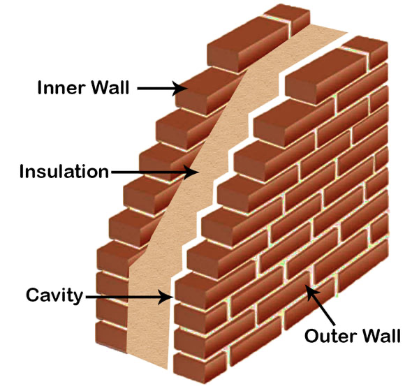 - Cavity walls are the best for temperature control in rooms. Construction technologists (11) experimented that the air in the cavity wall acts as a non-conductor of heat and hence minimizes the transmission of heat from the outer leaf to the internal face of the interior leaf. This is what in other terms called ‘fireproof’. Cavity walls give good thermal insulation keeping warm in winter and cool in summer.