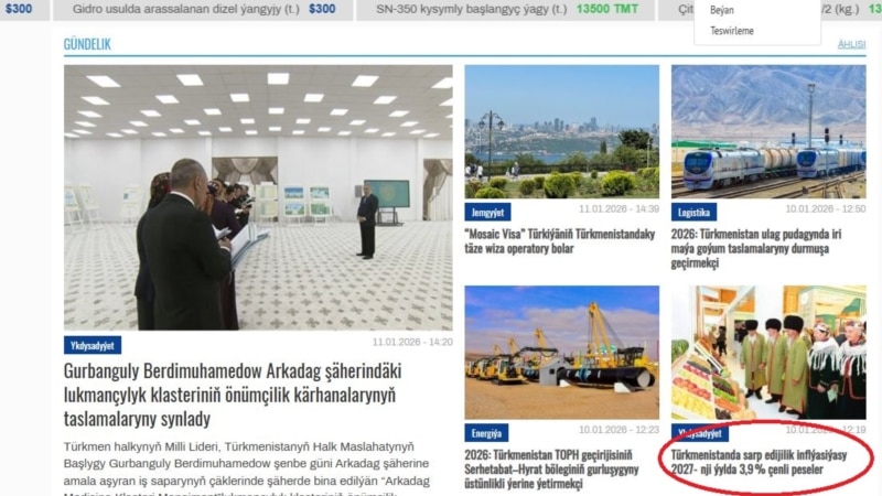 “Türkmenistanda sarp edijilik inflýasiýasy 2027-nji ýylda 3,9% çenli peseler” diýip, “Biznes Türkmenistan” neşiri 10-njy ýanwarda habar berdi. Emma bu habar soňra sahypadan aýrylana meňzeýär. Berk döwlet gözegçiliginde we senzura astynda işleýän türkmen metbugaty, şol sanda hökümetçi neşirler ýurtdaky ykdysady krizis, milli manadyň ‘gözgyny’ ýagdaýy, ilatyň durmuş, eklenç kynçylyklary barada maglumat bermekden saklanýar. Ýurtdaky sarp edijilik inflýasynyň indiki ýyl, aýlyklaryň we pensiýalaryň 10%... Читать дальше...