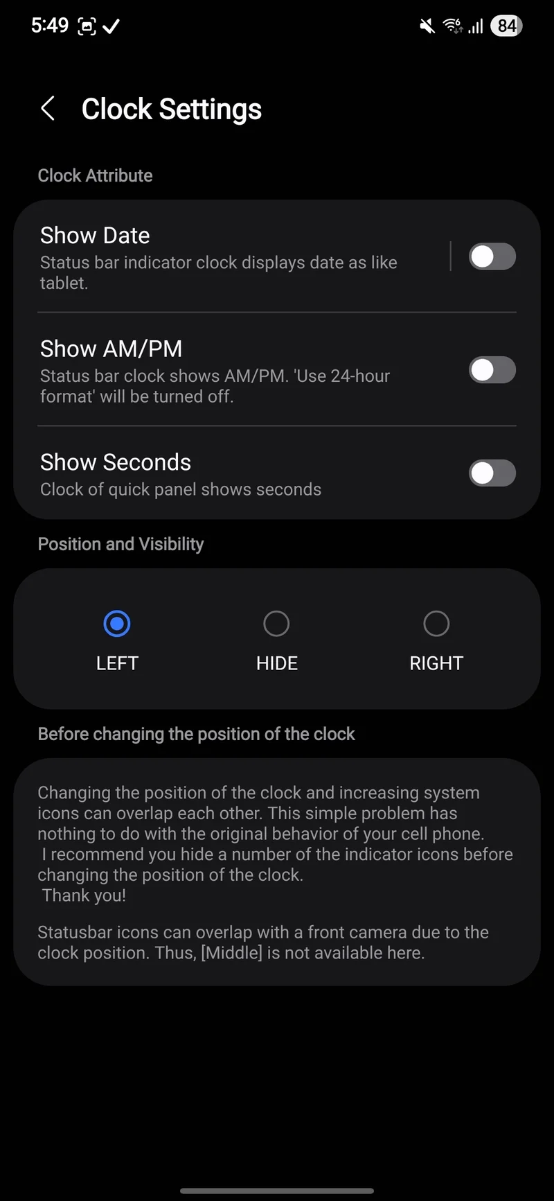 Кстати, часы тоже можно передвинуть или скрыть. А саму шторку уведомлений можно перекрасить в любые психоделические (или строгие) цвета.