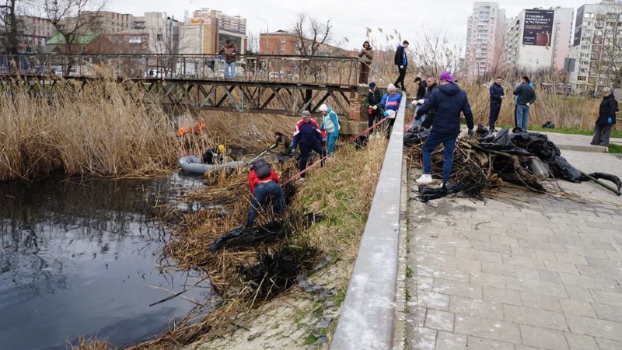 Пластик, покрышки и мертвая рыба. Три грузовика мусора вытащили волонтеры из пруда возле стадиона ФК «Краснодар»