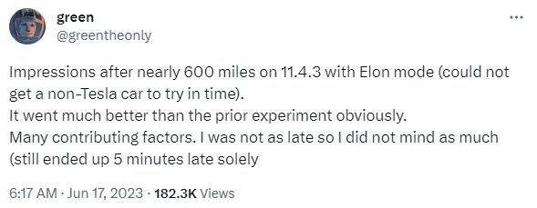 При этом после активации секретного режима вождения никаких улучшений относительно качества езды беспилотника Greentheonly не заметил — автомобиль всё так же меняет полосу движения без видимых на то причин, как и в стандартном бета-режиме, едет по скоростном шоссе крайне медленно и иногда тормозит резкими рывками. Возможно, это новый уровень беспилотного вождения без требований со стороны системы, о котором ранее намекал сам Илон Маск и который сейчас активно тестируют. Сама компания никак информацию не комментирует.