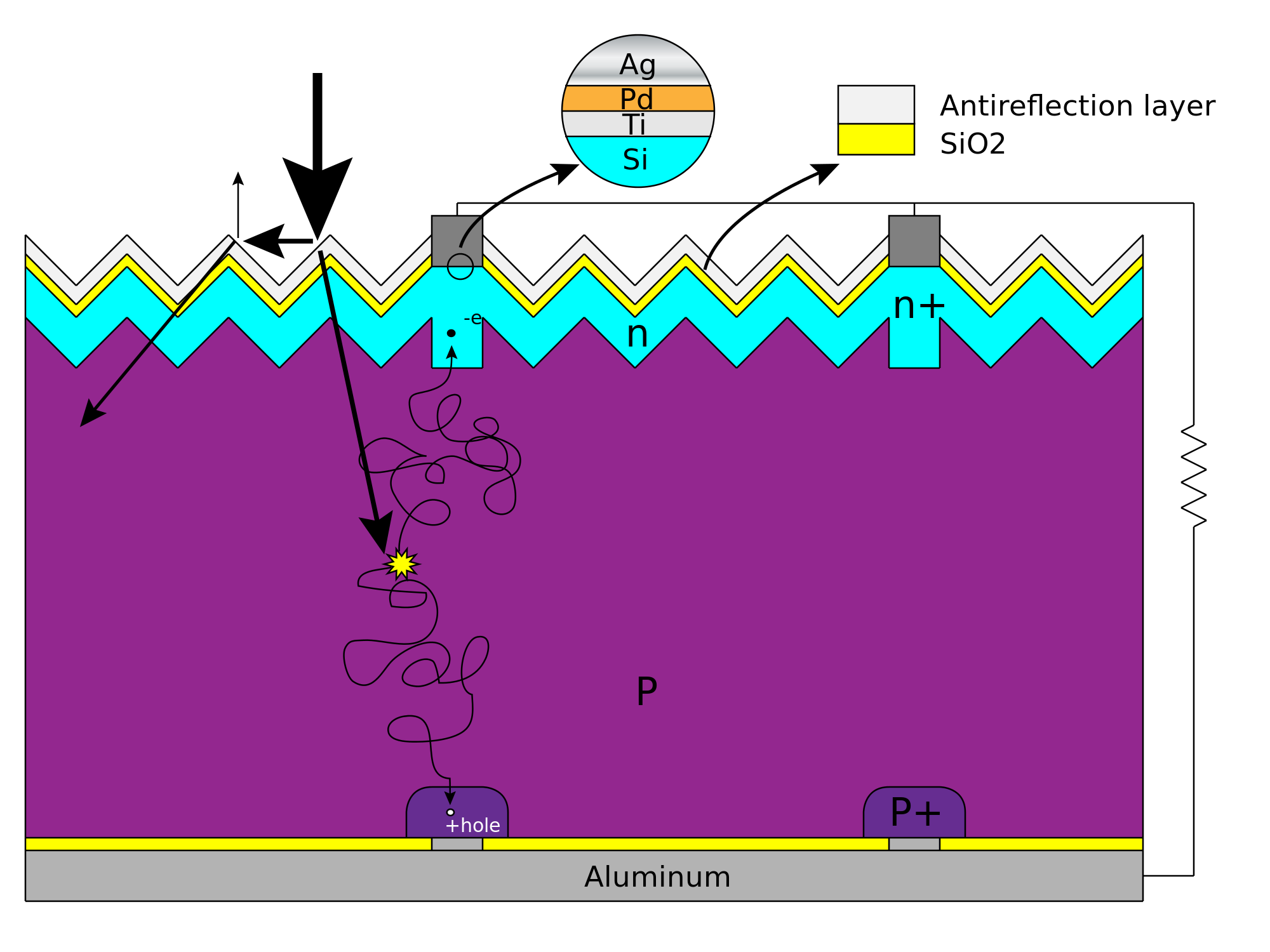 По принципу действия это похоже на работу солнечной панели: в фотоэлементе электроны выбиваются внешними фотонами, а в алмазной батарее источником энергии служат внутренние бета‑частицы. Такой подход позволяет напрямую преобразовывать энергию распада углерода‑14 в электрический ток без движущихся частей или внешнего света.