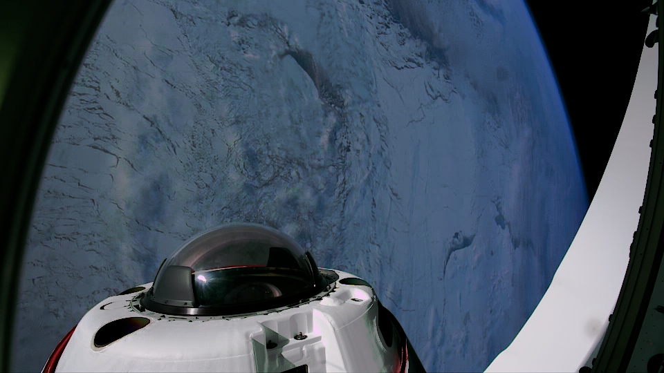 Вид на стеклянный купол КК Crew Dragon во время полёта Fram2, снимок получен с камеры на откидном люке. Credit: SpaceX.