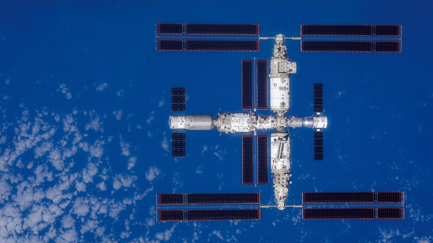 Китайская многомодульная орбитальная станция «Тяньгун», снимок сделан с борта КК «Шэньчжоу-17» в 2023 году. Credit: CNSA/CMS.