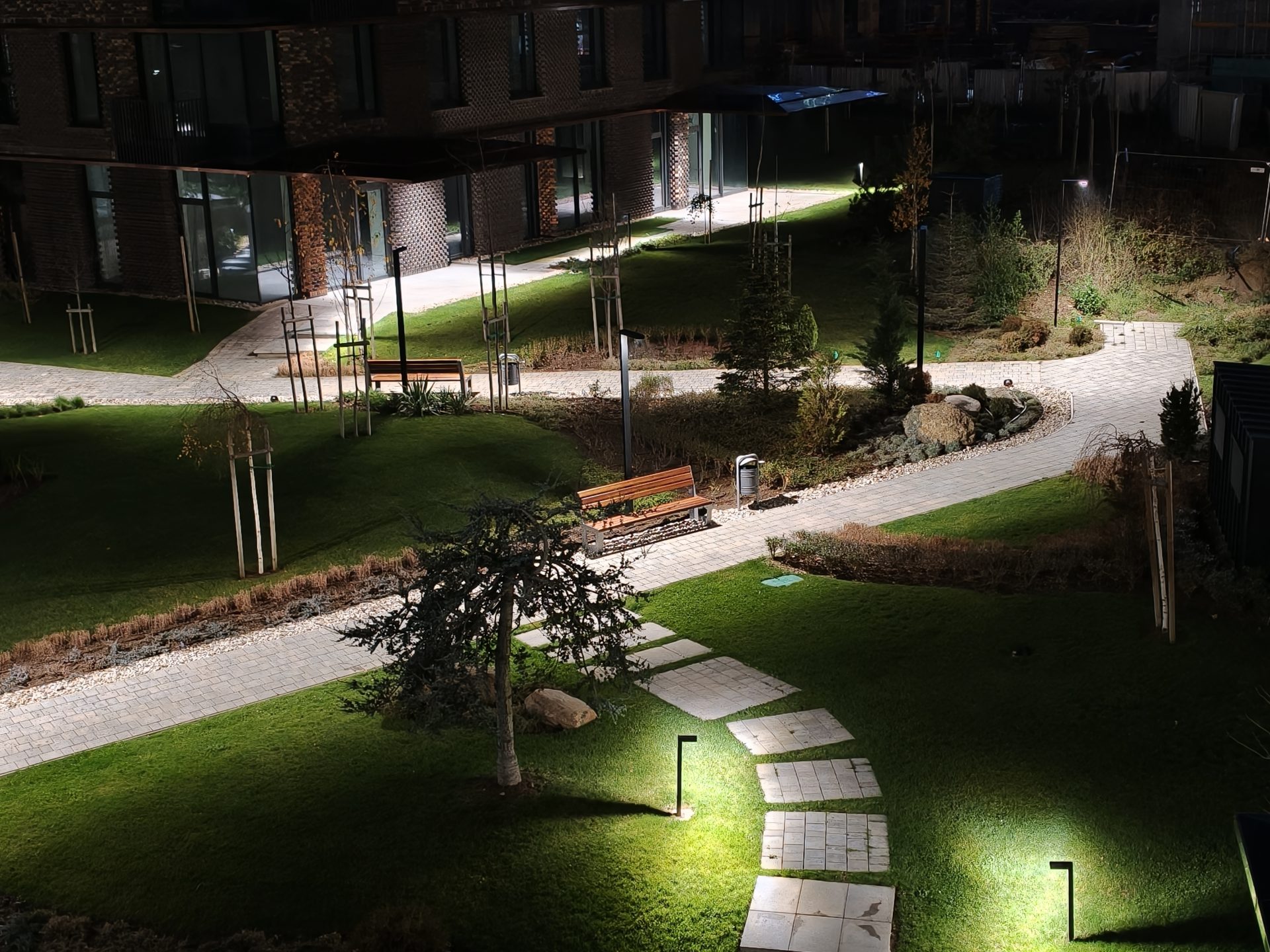 В темноте ни одна из сверхширокоугольных камер не показывает по-настоящему выдающихся результатов, однако все они вполне достойно справляются с задачей, пусть и с некоторыми различиями. Снимки с Honor обладают наиболее выраженным «акварельным» эффектом: алгоритмы жертвуют мелкими деталями ради общей чистоты кадра и снижения шумов. Баланс белого у всех устройств настроен корректно, насыщенность цветов также на хорошем уровне.