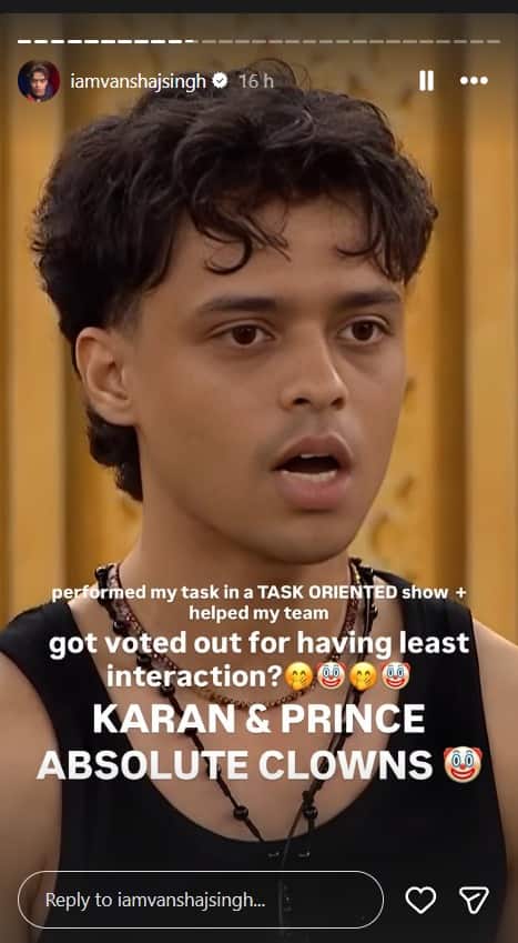 Vanshaj moved to Instagram to criticise the eviction and the cause behind it, writing, "WTF?" He then called out both Karan and Prince Narula, calling them "mandbudhi" and "absolute clowns."