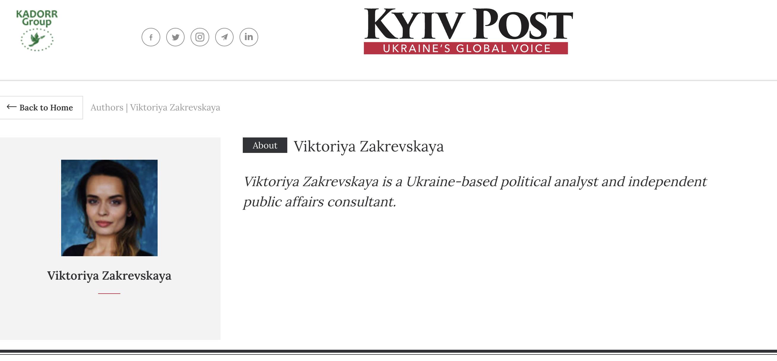 Освіта та походження Вікторії Закревської невідомо, або вона старанно це переховує. Вказується, що вона лектор швейцарського університета Санкт-Галлена та засновинця Boldozer Consulting. До цього на сайті університета її вказували як виконавчого директора та консультанта зі зв’язків з громадськістю організації Grand Challenge.