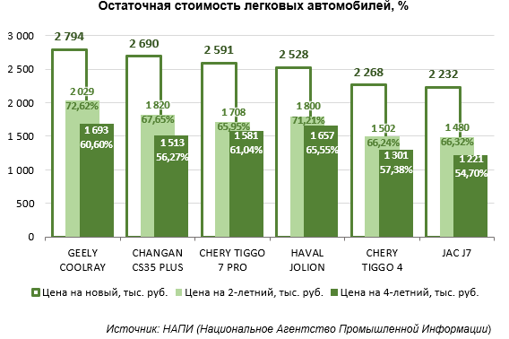 Отдельного внимания заслуживает появление в исследовании данных по Jac J7. Аналитики отмечают, что за четыре года автомобиль потерял более 45% стоимости.