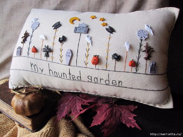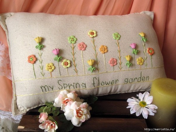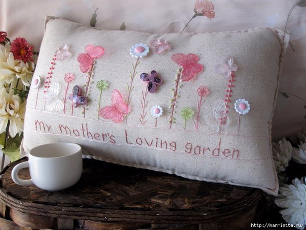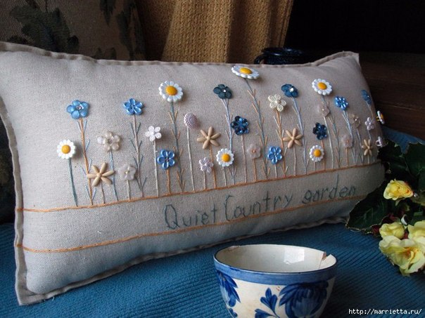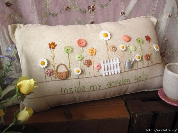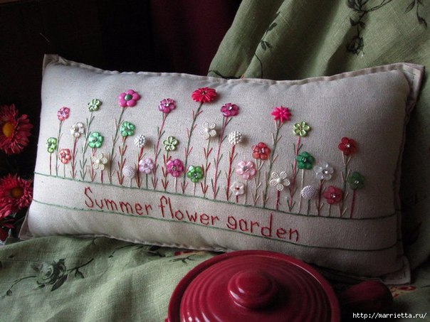 Интерьерные подушки с вышивкой и декоративными пуговичками