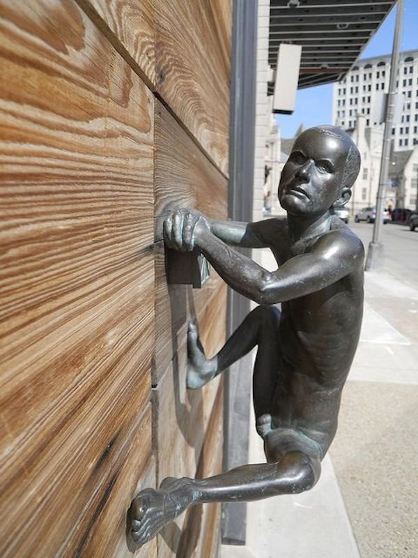 У нас не так много информации о ней (кроме той, что это кованое произведение искусства), но мы не уверены, что нам хотелось бы иметь дверную ручку в виде крошечного человека, выглядящего так, будто он решил взломать нашу дверь.