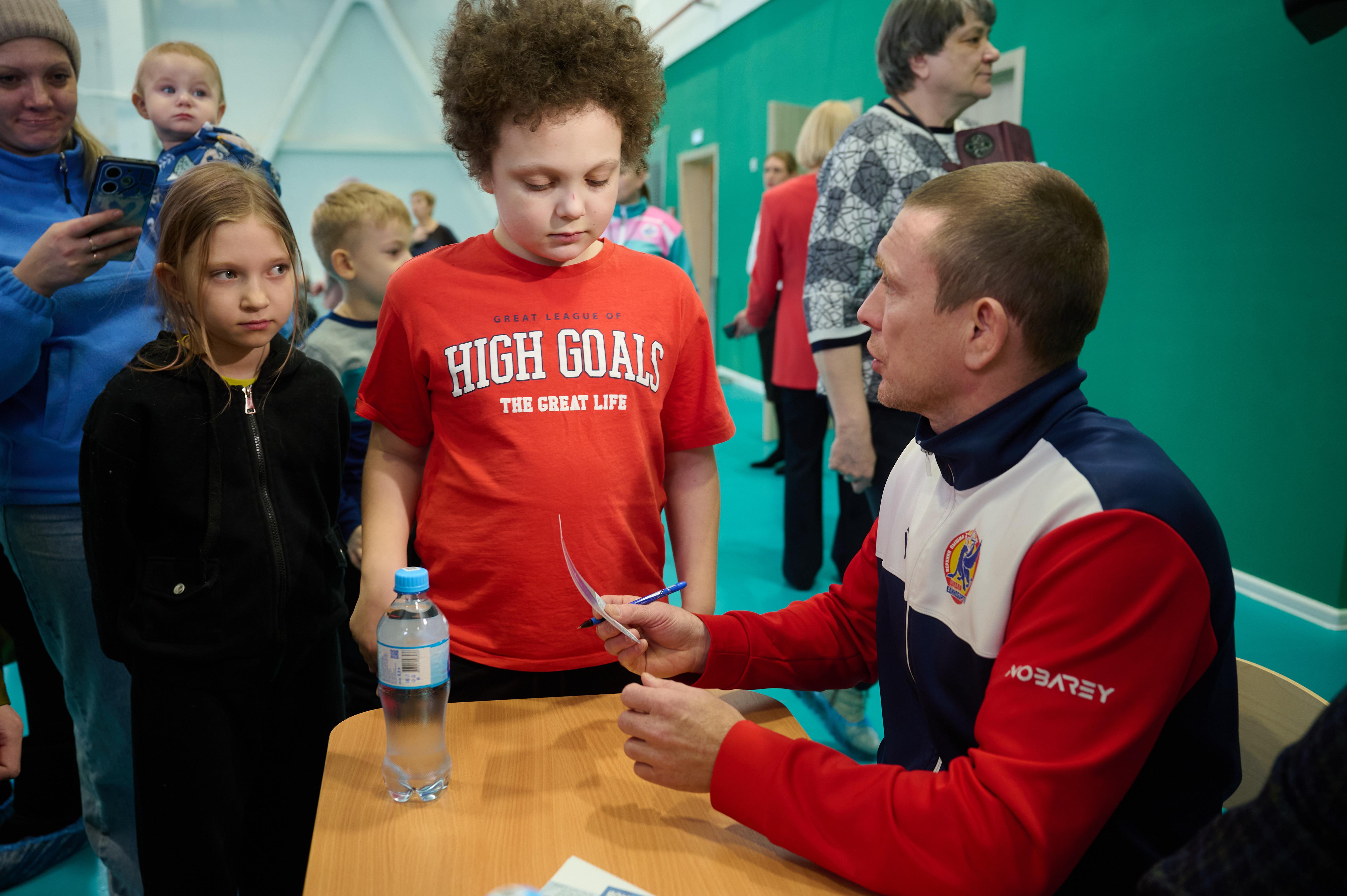 Поздравить с открытием жителей поселка Исеть приехал двукратный чемпион мира по самбо Станислав Скрябин. Он раздал ребятам автографы и поделился впечатлениями об увиденном: