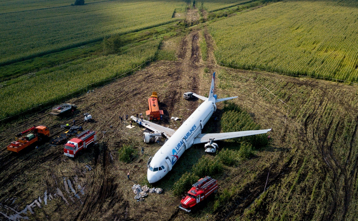 6 ч. 16 мин. Командир сообщает диспетчеру, что посадил самолет в кукурузном поле. Идет эвакуация пассажиров.