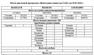 Итоги дипломной программы «Новогодние каникулы UA3L» на 29.01.2026 г.