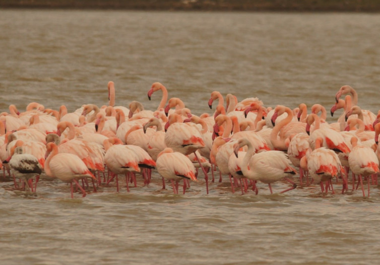 На берегу озера Аджиголь в Крыму заметили стаю фламинго из 162 птиц