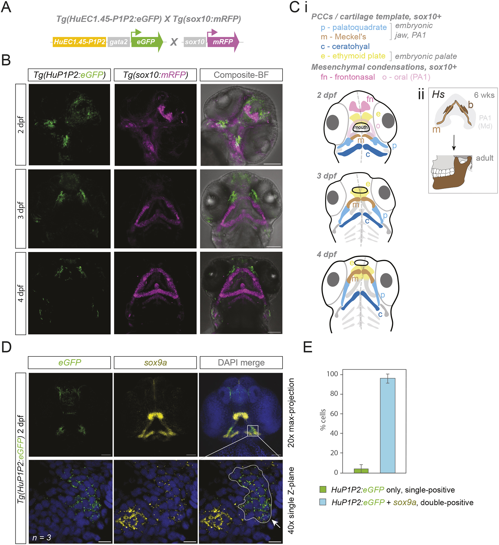Что эта повышенная активность означает на практике? Усиленная работа энхансера EC1.45 должна приводить к более высокой выработке белка SOX9. А SOX9, в свою очередь, управляет популяцией клеток черепного нервного гребня — по сути, стволовых клеток-мигрантов, из которых строится большая часть лицевого скелета.