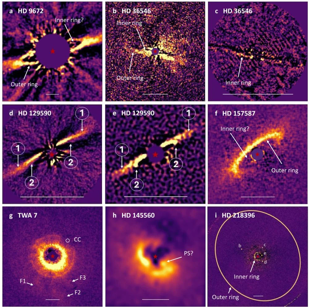 Международная группа исследователей под руководством Натальи Энглер из Швейцарской высшей технической школы Цюриха получила детальные изображения 51 диска обломков вокруг молодых звёзд с помощью прибора SPHERE, установленного на Очень Большом